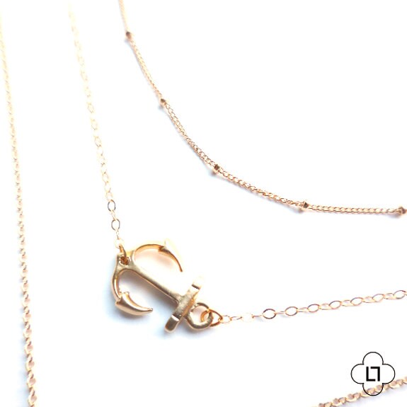Minimal layers add some sparkle to any outfit! The top satellite chain is 14k gold filled and adds great pattern and texture to this set. The anchor in the middle adds a nautical feel which is completed by the high-quality freshwater pearl suspended from the bottom chain. Each layer can be purchased individually so you can mix and match these with your other favorite necklaces. I can also combine all three of these necklaces onto a single chain to minimize clasps sliding around.