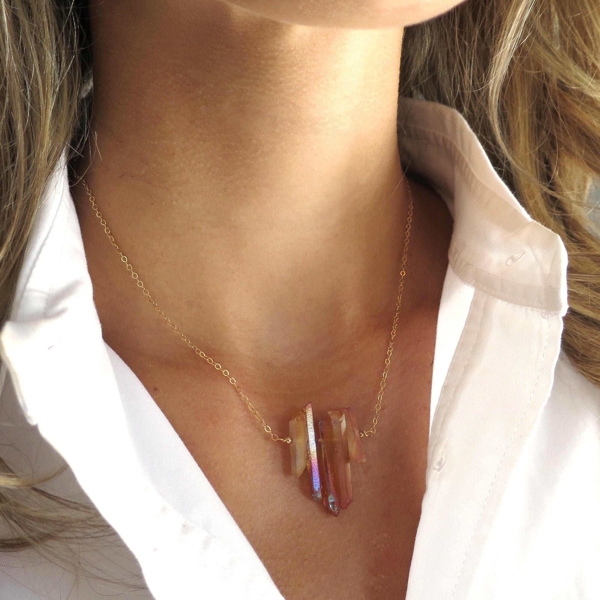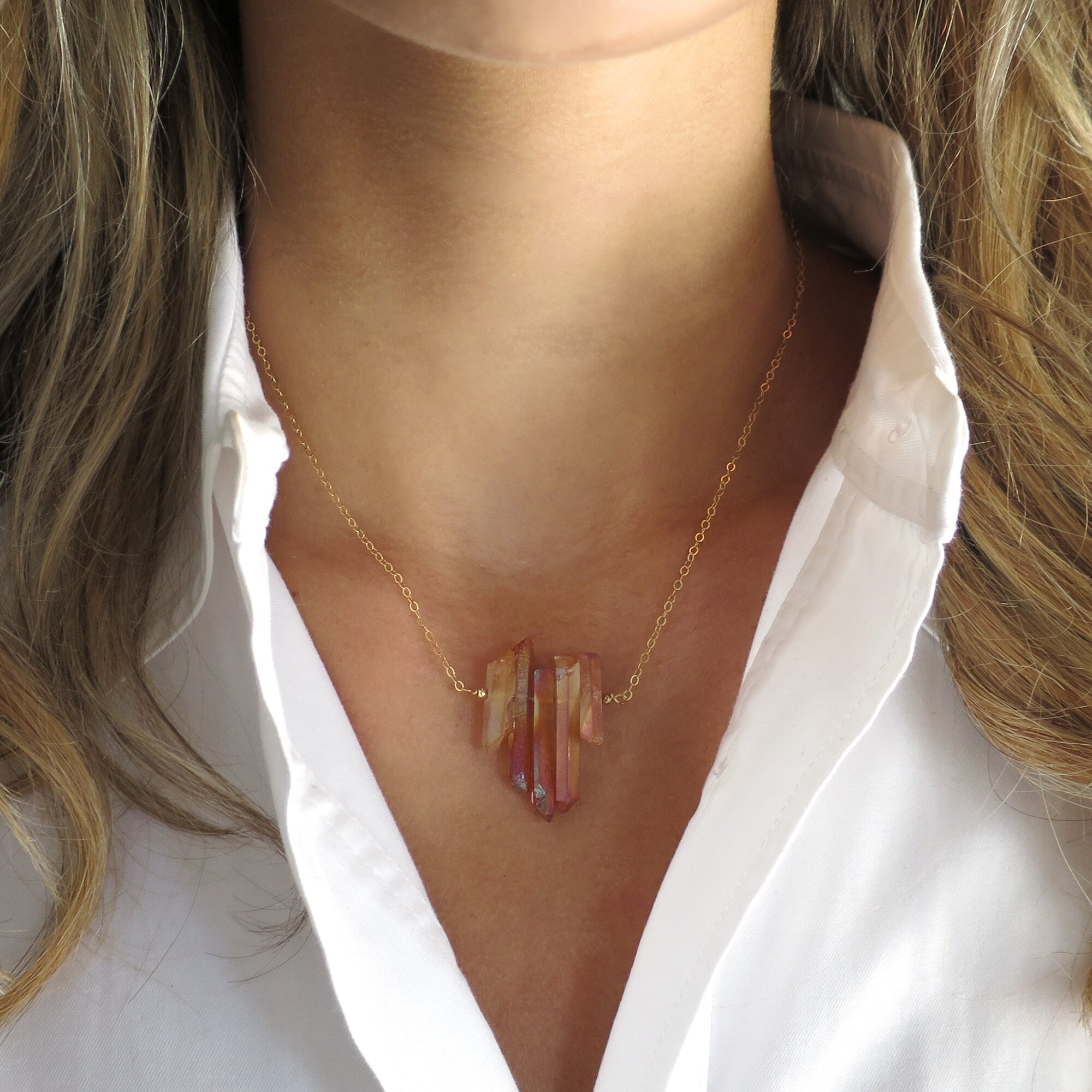 This necklace is the perfect summer statement. The sunstone spikes on the bar are unique and look great with a tan!