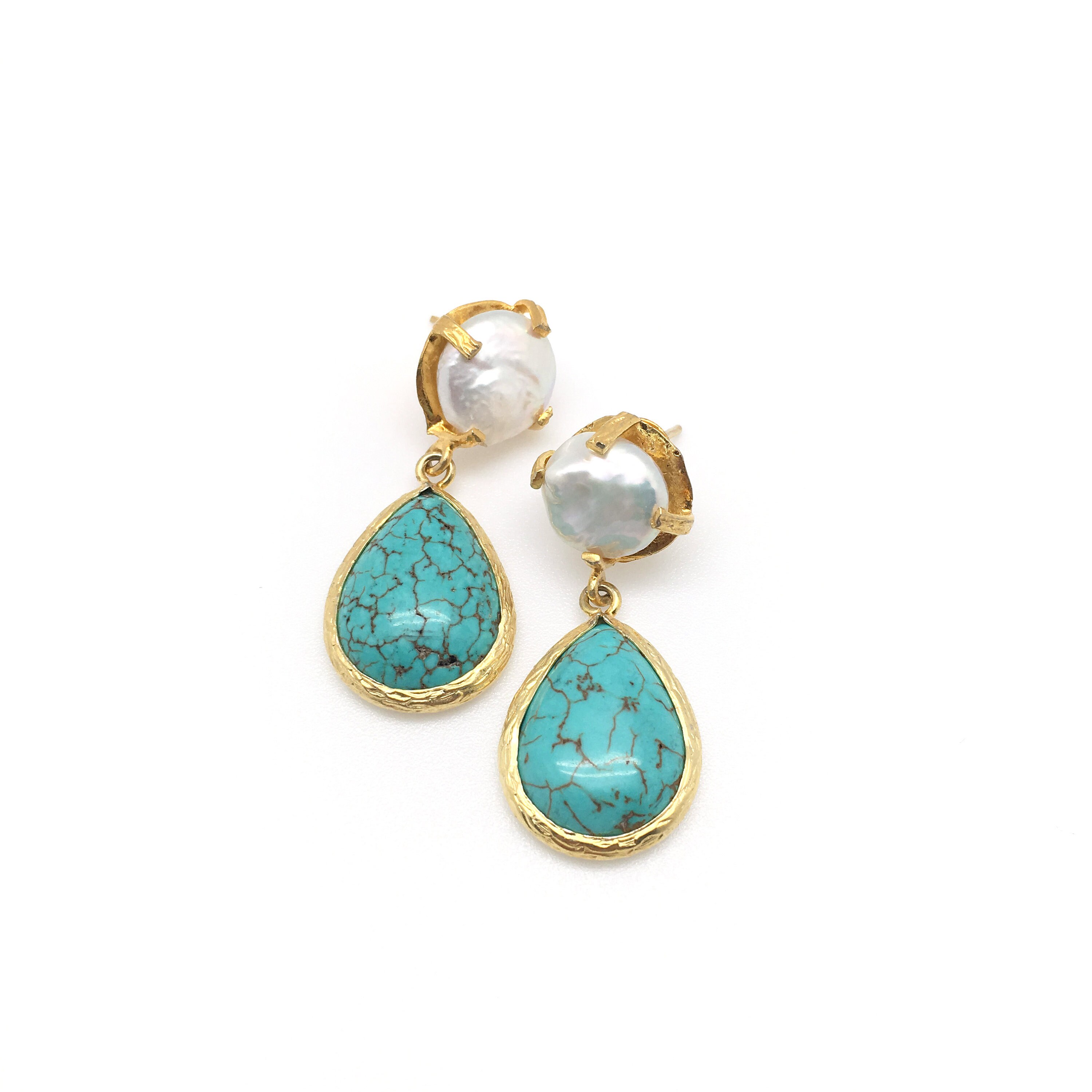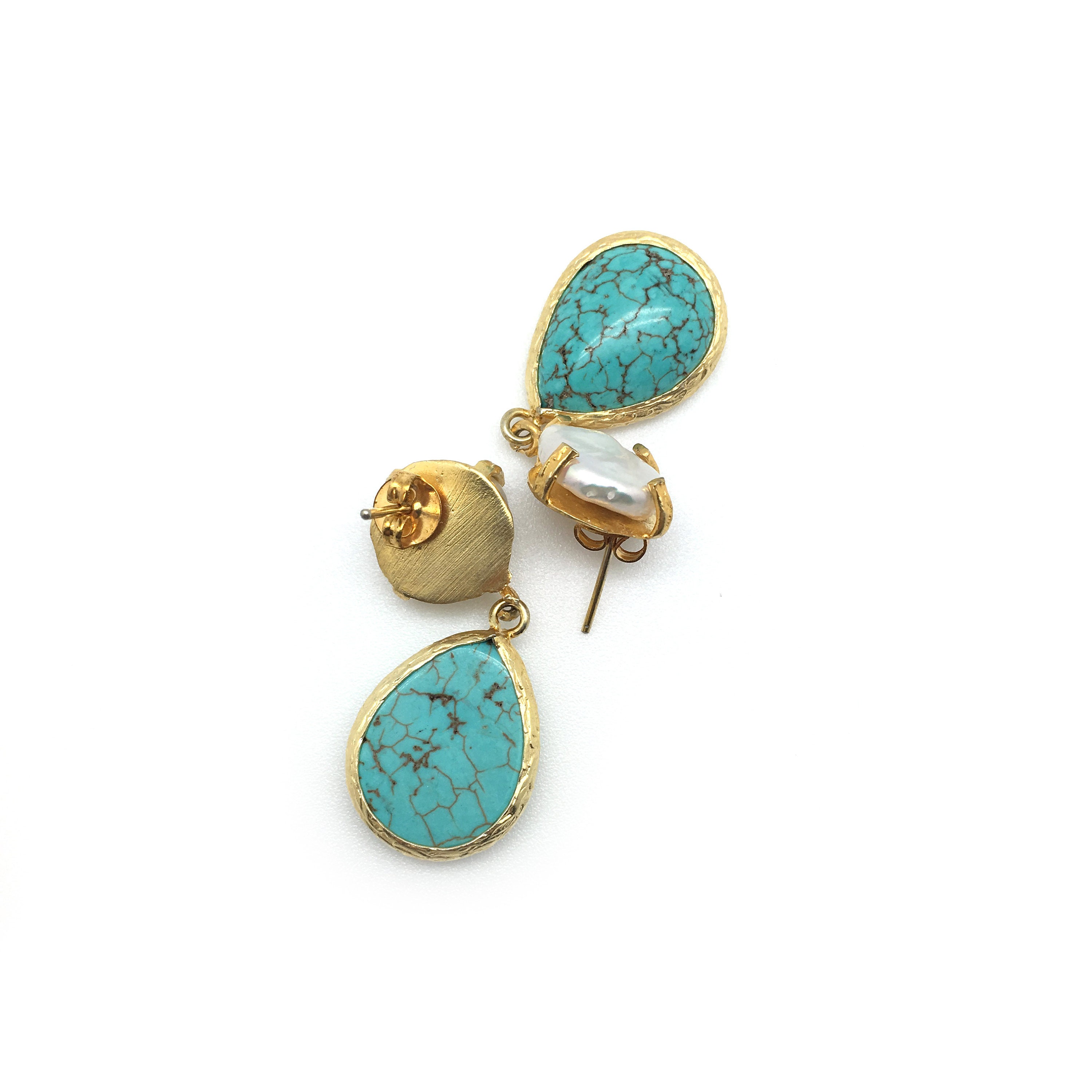 Limited edition! I'm featuring a select few of these stunning, genuine turquoise + pearl gold dangle earrings on posts. Statement + stunner!